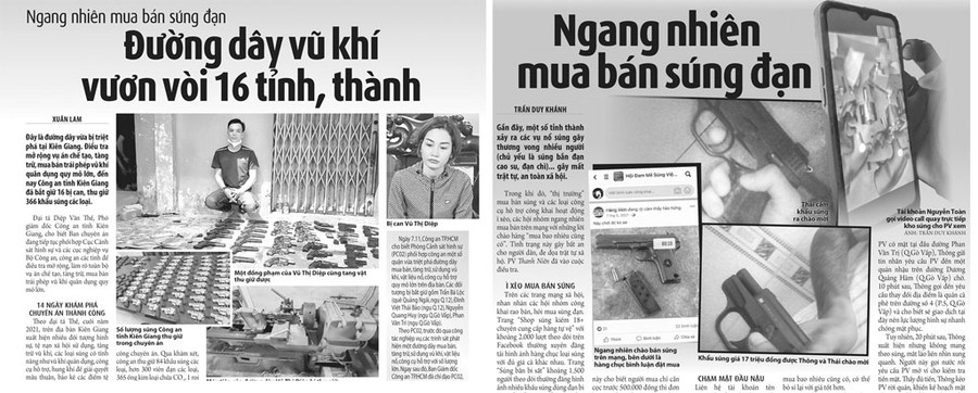 “Hiện việc mua bán súng đạn (loại công cụ hỗ trợ) dễ dàng trên mạng nên các đối tượng phạm tội thường mua trên đó. Lực lượng chức năng, lực lượng công an sẽ cùng phối hợp vào cuộc để xử lý các đối tượng mua bán súng đạn… trên mạng để răn đe”, một lãnh đạo Cục An ninh mạng và phòng chống tội phạm sử dụng công nghệ cao, Bộ Công an nhấn mạnh.