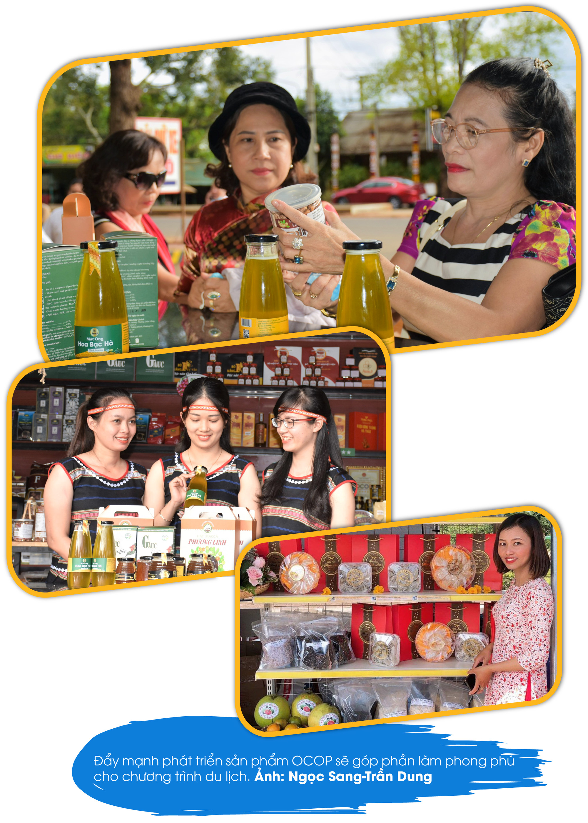 Việc lồng ghép xây dựng sản phẩm OCOP gắn với du lịch sẽ tận dụng được tối đa nguồn lực của tỉnh. Đây cũng là hướng đi mà ngành du lịch Gia Lai đang triển khai thực hiện. Theo thống kê, toàn tỉnh có 214 sản phẩm OCOP cấp tỉnh, trong đó có 25 sản phẩm đạt 4 sao và 189 sản phẩm đạt 3 sao. Các sở, ban, ngành, đoàn thể, địa phương đã phối hợp tuyên truyền, khuyến khích sử dụng sản phẩm OCOP của tỉnh làm tặng phẩm cho khách du lịch tham quan trong các sự kiện. Bà Nguyễn Thị Bích Thu-Giám đốc Trung tâm Khuyến công và Xúc tiến thương mại (Sở Công thương) khẳng định: “Chúng tôi luôn đồng hành cùng các chủ thể để hỗ trợ xây dựng, trưng bày và giới thiệu sản phẩm OCOP của tỉnh. Thông qua việc quảng bá tại các sự kiện văn hóa-du lịch của tỉnh sẽ tạo được sự giao lưu, kết nối, tiêu thụ các sản phẩm đặc trưng, sản phẩm OCOP đến người dân trong và ngoài tỉnh”.