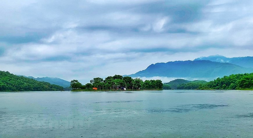 | Đầm Vân Hội được các dòng suối lớn như: Ngòi Vần, ngòi Lĩnh, ngòi Chanh, ngòi Hạ... dồn nước từ các khu rừng nguyên sinh về làm đầy, diện tích lên tới 410 ha nước mặt với trên 40 đảo lớn, nhỏ bốn mùa cây cối tốt tươi. (Ảnh: Xuân Mai/Vietnam+) |