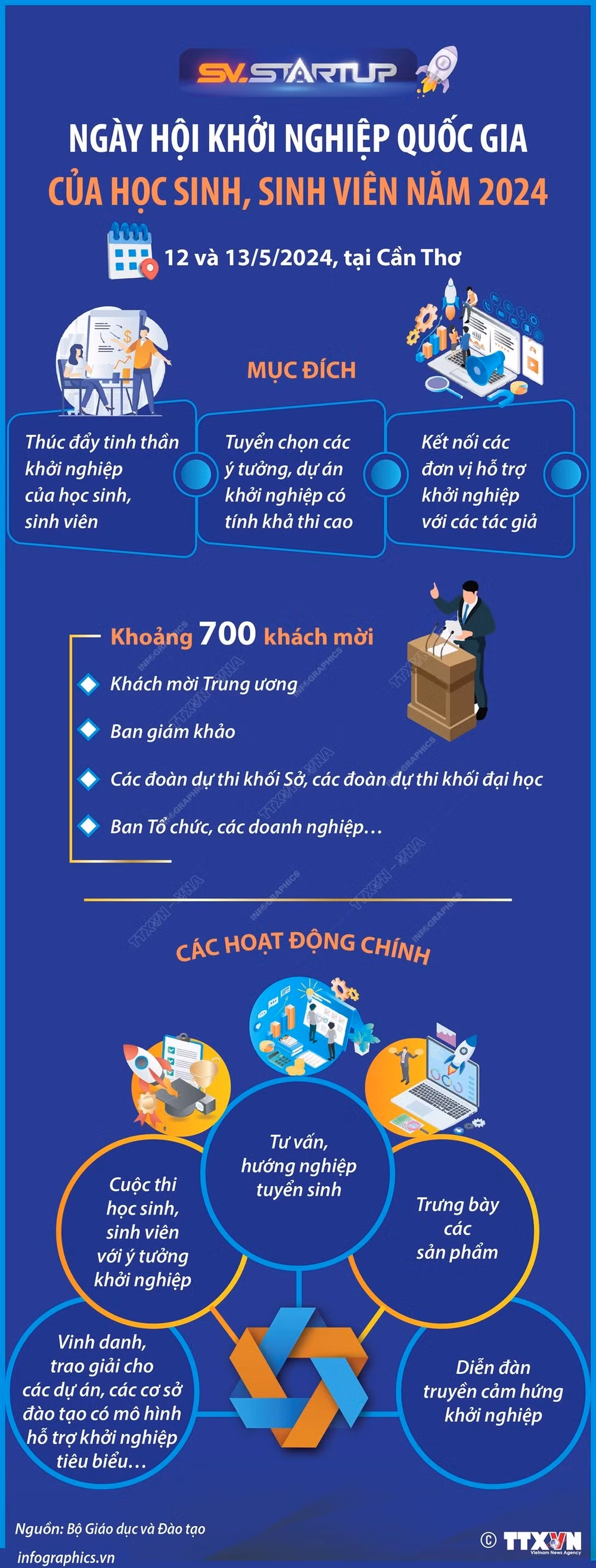 Ngày hội Khởi nghiệp Quốc gia của học sinh, sinh viên lần thứ 6-2024 sẽ diễn ra tại Cần Thơ trong hai ngày 12 và 13/5/2024.