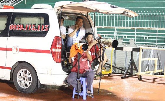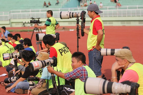 Phóng viên ảnh trang bị ống kính “khủng” tác nghiệp tại một sự kiện thể thao.