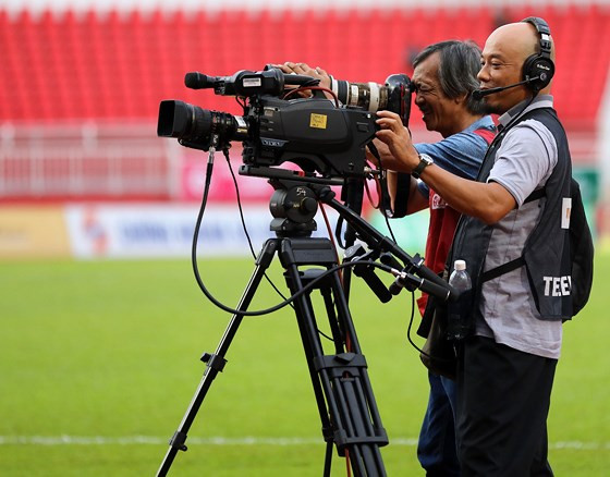 Phóng viên tác nghiệp tại Nuti Cafe V-League 2018.