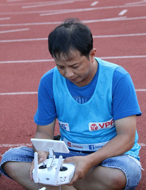 Phóng viên Dũng Phương (Báo Sài Gòn Giải Phóng) sử dụng flycam trong tác nghiệp.