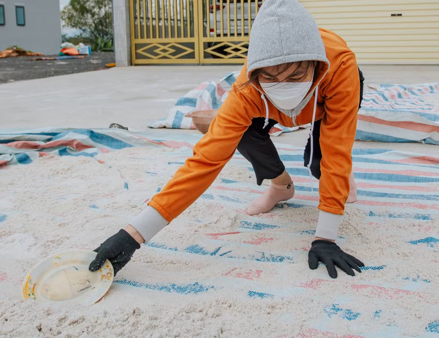 Nhưng để cát trắng này có thể “biến” thành tiền, còn phải qua vài công đoạn nữa. Về đến nhà, họ phải nhặt rác bẩn, sàng qua vài lần, phơi 4-5 nắng nếu thời tiết thuận lợi hoặc sấy trên lửa nếu trời không nắng. “Vì nhiều công như thế nên mới có cái nghề “đào cát trắng”, chứ nếu không thì người ta đã tự đi đào lấy cát về dùng rồi”, bà Xuân giải thích.