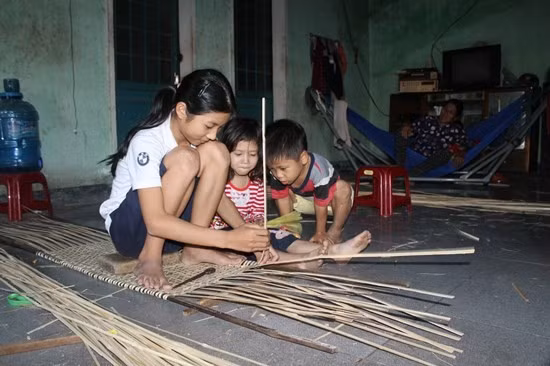 Chị Nguyễn Thị Thu Cúc (49 tuổi), bảo: “Nhà mình cậy vào nghề đan vỉ dữ lắm. Với nhà khác, nó là nghề phụ, chứ với mình nó là nghề cho thu nhập chính. Cả nhà làm quanh năm mà không đủ bỏ vỉ cho bạn hàng. Không phụ thuộc vào thời tiết, thu nhập của gia đình đều đều khoảng 150 ngàn đồng/ngày. Nhờ vậy mà vợ chồng mình nuôi được các con ăn học”.