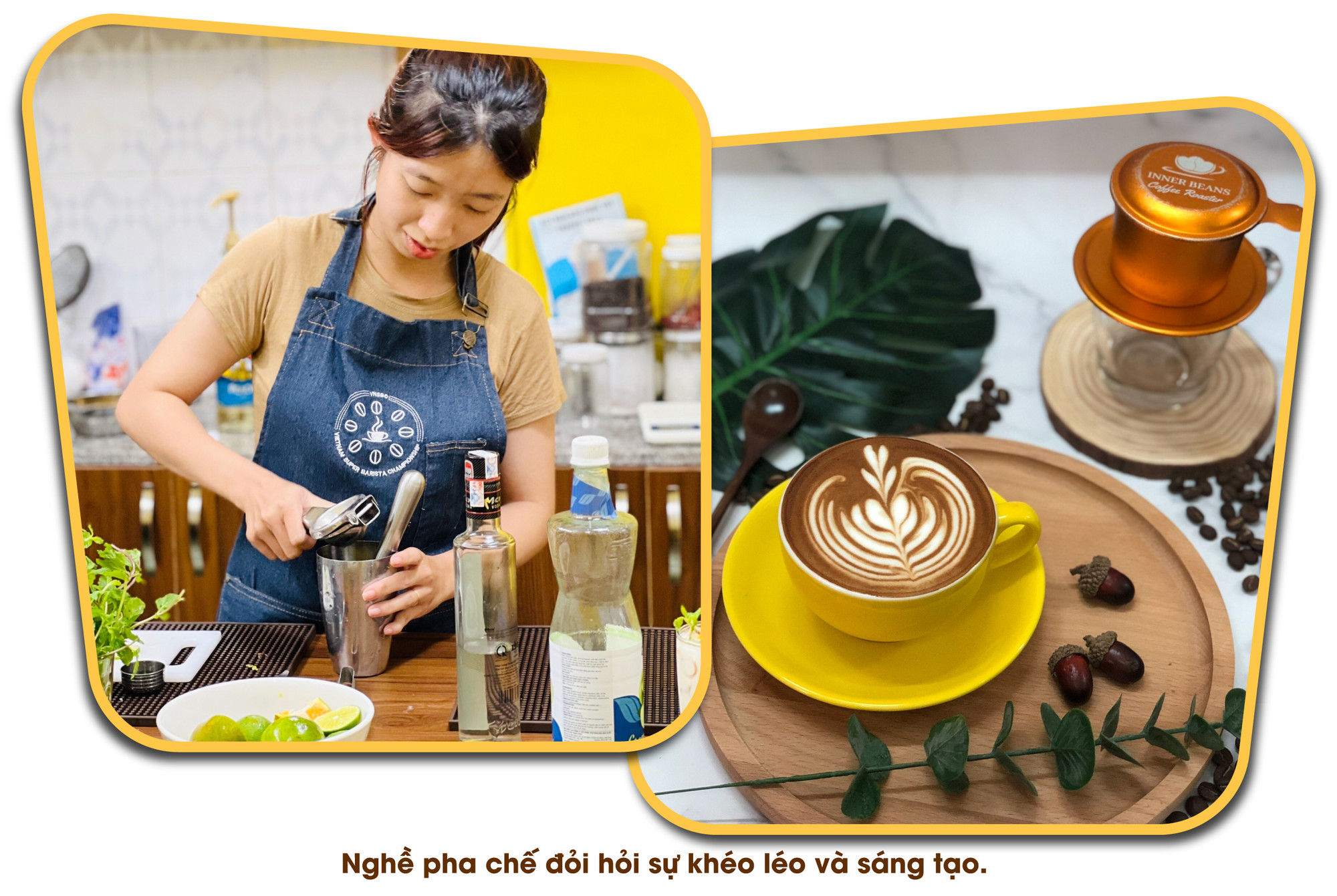 Theo anh Trung, bước vào quán cà phê, bên cạnh không gian ấm áp với ánh đèn vàng tạo cảm giác thư thái, nhẹ nhàng thì ấn tượng nhất với khách vẫn là hương vị cà phê. Nhất là khi quán khéo léo bố trí một dãy ghế cạnh quầy pha chế, để khách vừa thưởng thức cà phê, vừa quan sát những động tác pha chế điêu luyện của barista (thợ pha chế).
