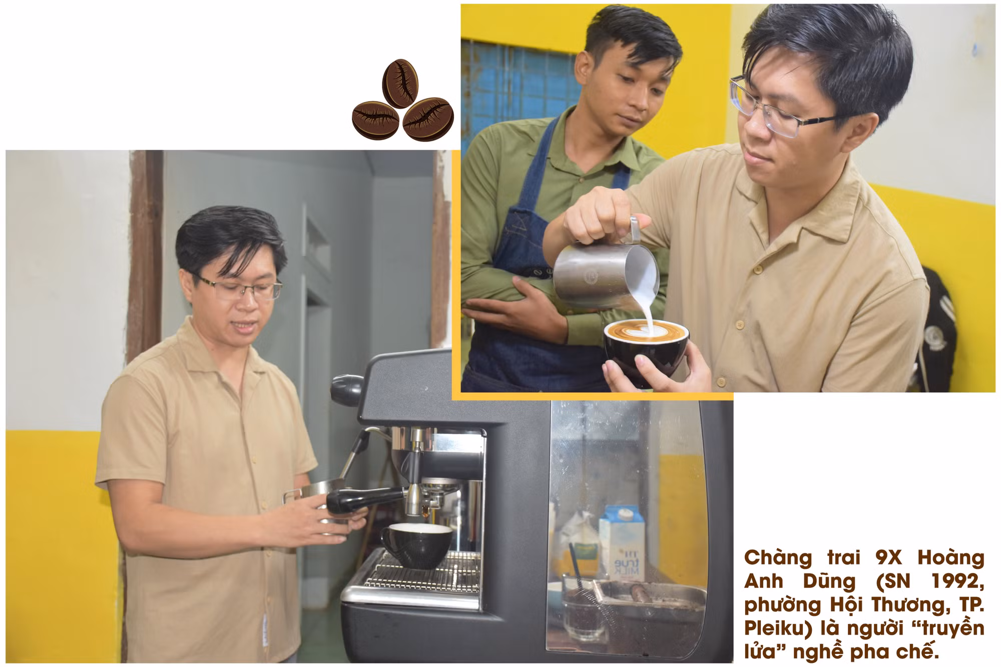 Hoàng Anh Dũng cho hay, anh đặc biệt có niềm đam mê với cà phê. Theo anh, Gia Lai là xứ sở của cà phê. Vậy nên, anh luôn suy nghĩ tại sao không phát triển thức uống này để hút khách hơn? Từ đó, anh Dũng đã tự mày mò học hỏi và nghiên cứu thêm các cách pha chế cà phê. Với anh, cà phê không đơn thuần là thức uống mà nó còn mang tính nghệ thuật. Đến nay, anh Dũng đã pha chế thành công một số loại cà phê như: Cappuccino, Latte, Machiato, Latte macchiato, Mocha, Espresso conpanna…