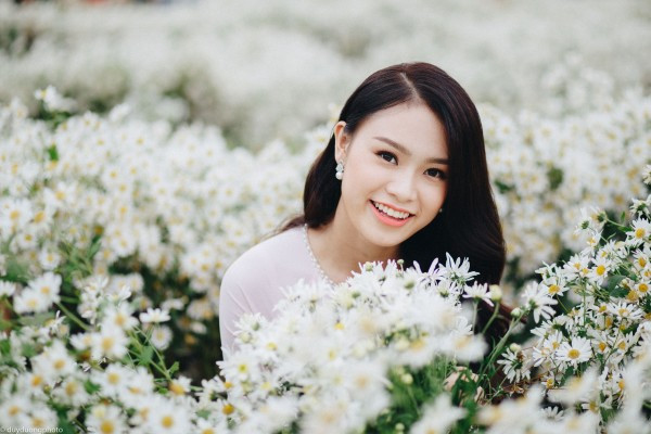 Dù không trang điểm đậm nhưng gương mặt luôn rạng rỡ, xinh đẹp.