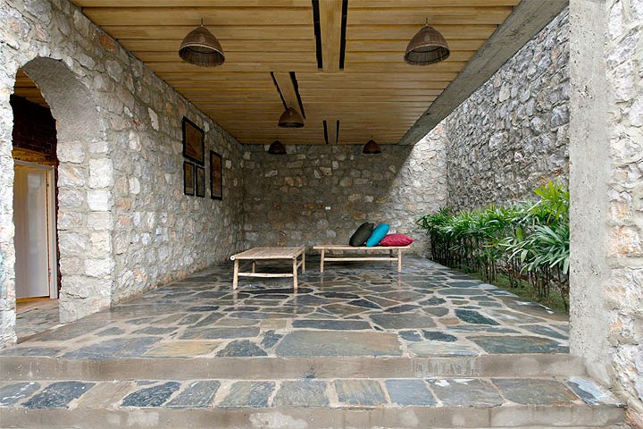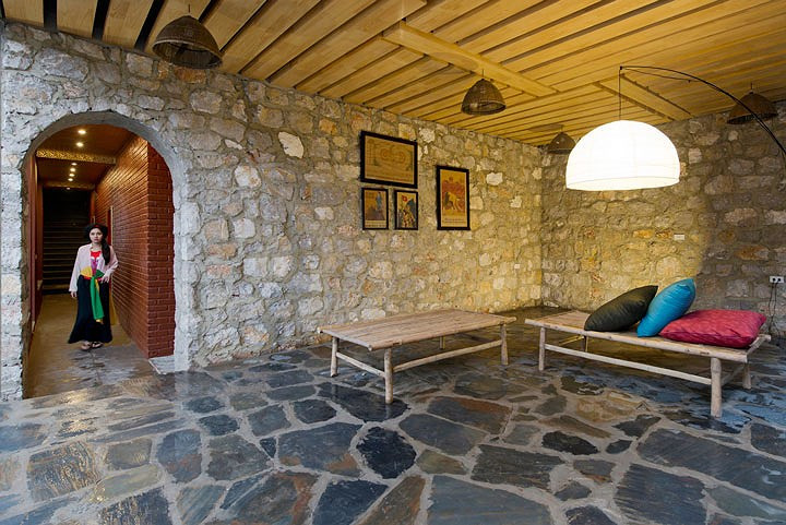 Các bức tường được xây bằng đá, một vật liệu quen thuộc đối với dân địa phương.