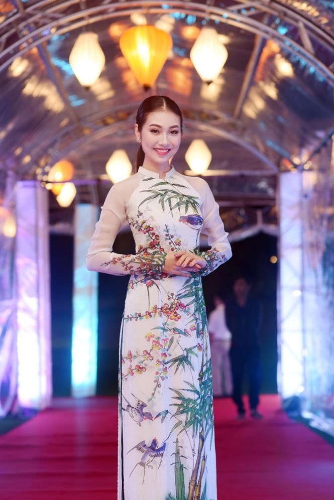 Góp mặt trong màn trình diễn áo dài của Ngọc Hân tối qua còn có Bùi Nữ Kiều Vỹ - Người đẹp áo dài của Hoa hậu Việt Nam 2016.