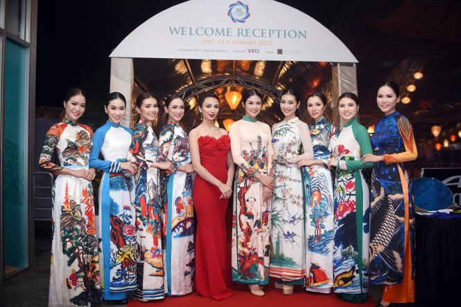 Hoa hậu Việt Nam 2010 cho biết, cô cảm thấy rất tự hào khi đã có cơ hội trình diễn áo dài tại tiệc chào mừng Hội nghị cấp cao APEC 2017.