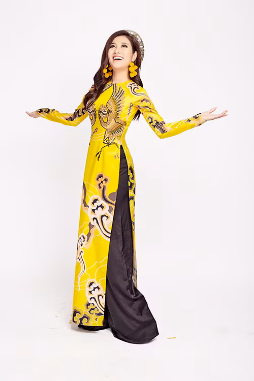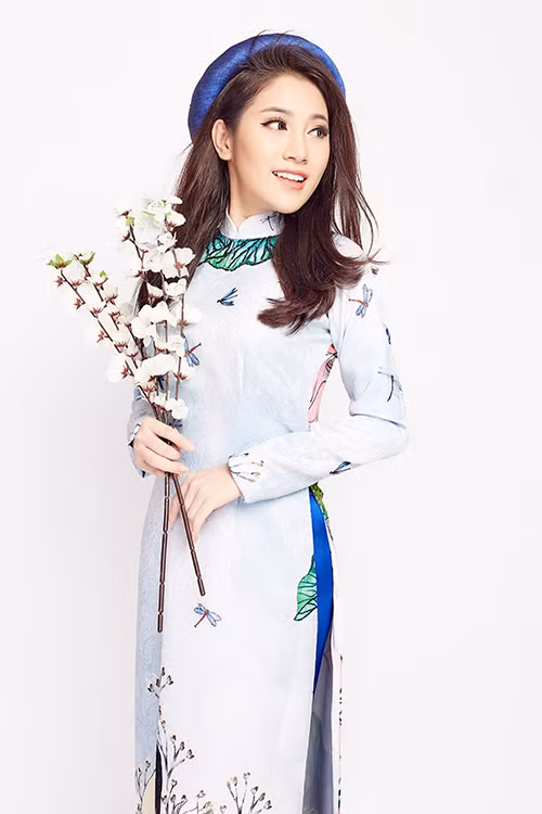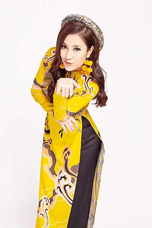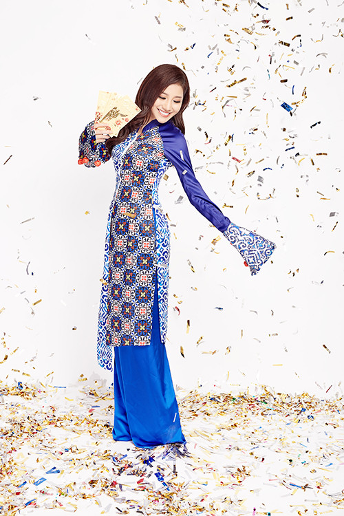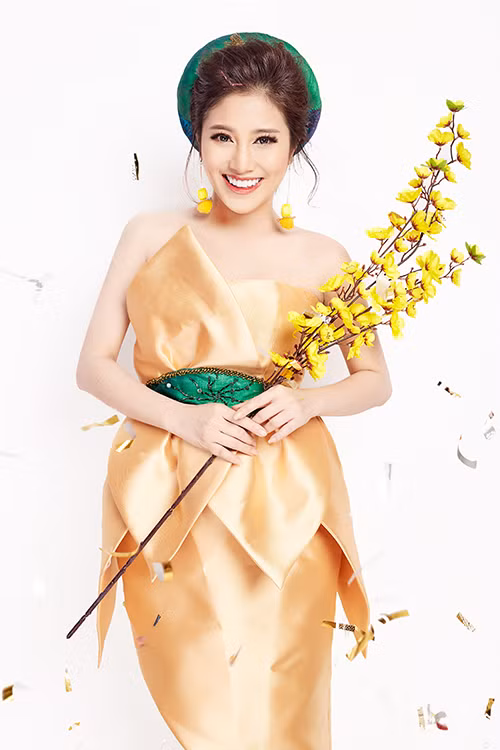 Nữ ca sĩ diện áo dài khoe vóc dáng thon thả và nụ cười rạng rỡ đón xuân 2018.