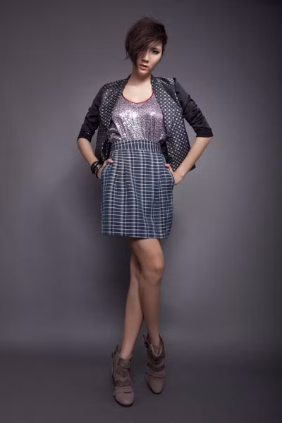 Nữ người mẫu thể hiện nét năng động, đầy ngẫu hứng của bộ sưu tập thu đông trong dịp cuối năm.