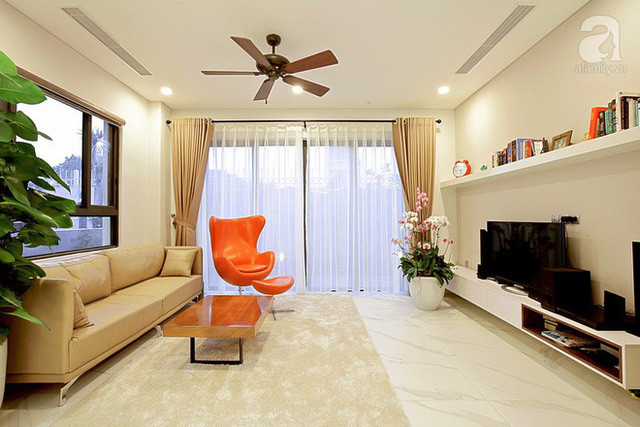 Phòng khách thanh lịch nhưng vẫn có điểm nhấn đẹp mắt.