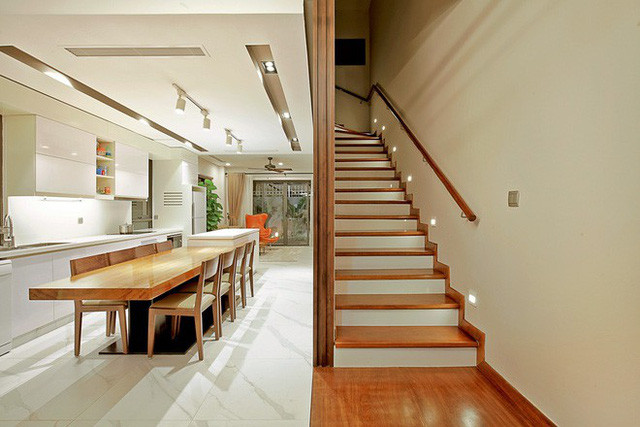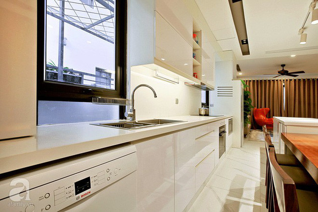 Khu bếp tính toán kĩ về công năng cũng như tính thẩm mỹ.