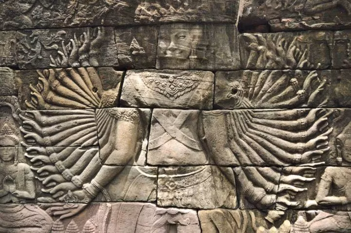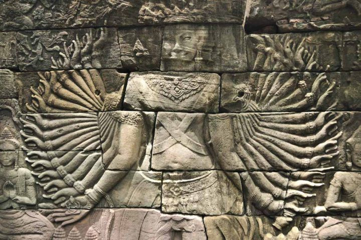 Bức chạm hình Quan Âm Bồ Tát nghìn tay nổi tiếng tại Banteay Chhmar. Nhà bảo tồn đá Simon Warrack, người đã nghiên cứu về các ngôi đền ở Campuchia hơn 20 năm, ước tính hàng trăm mét tường chạm khắc đã sụp đổ qua thời gian, để lại một câu đố bí ẩn cho các nhà lịch sử và khảo cổ học. Ông so sánh bầu không khí tại Banteay Chhmar giống như quần thể Angkor Wat vào những năm 1990, khi ngành du lịch vẫn còn mới mẻ. Với hàng triệu người tới Siem Reap mỗi năm, Warrack cho rằng "cảm giác bí ẩn và mạo hiểm" từng gắn liền với Angkor Wat đã biến mất.