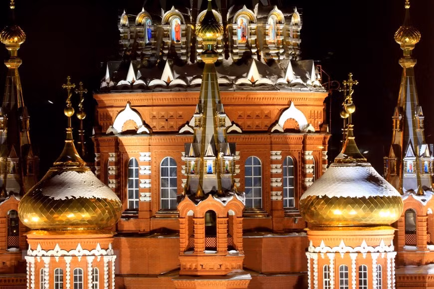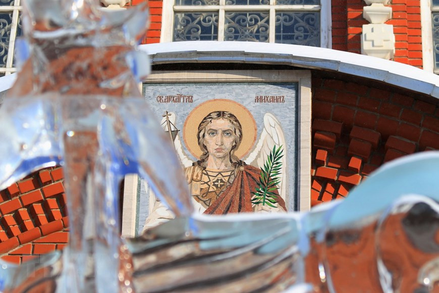 | Nằm ở trung tâm thành phố Izhevsk (thủ đô của Cộng hòa Udmurt, Liên bang Nga), cách thủ đô Moskva hơn 1.100km về phía Đông, Nhà thờ Thánh Mikhail được coi là một trong những di tích kiến trúc lớn nhất và đẹp nhất của nhà thờ Chính thống giáo Nga. (Ảnh: Trần Hiếu/TTXVN) |