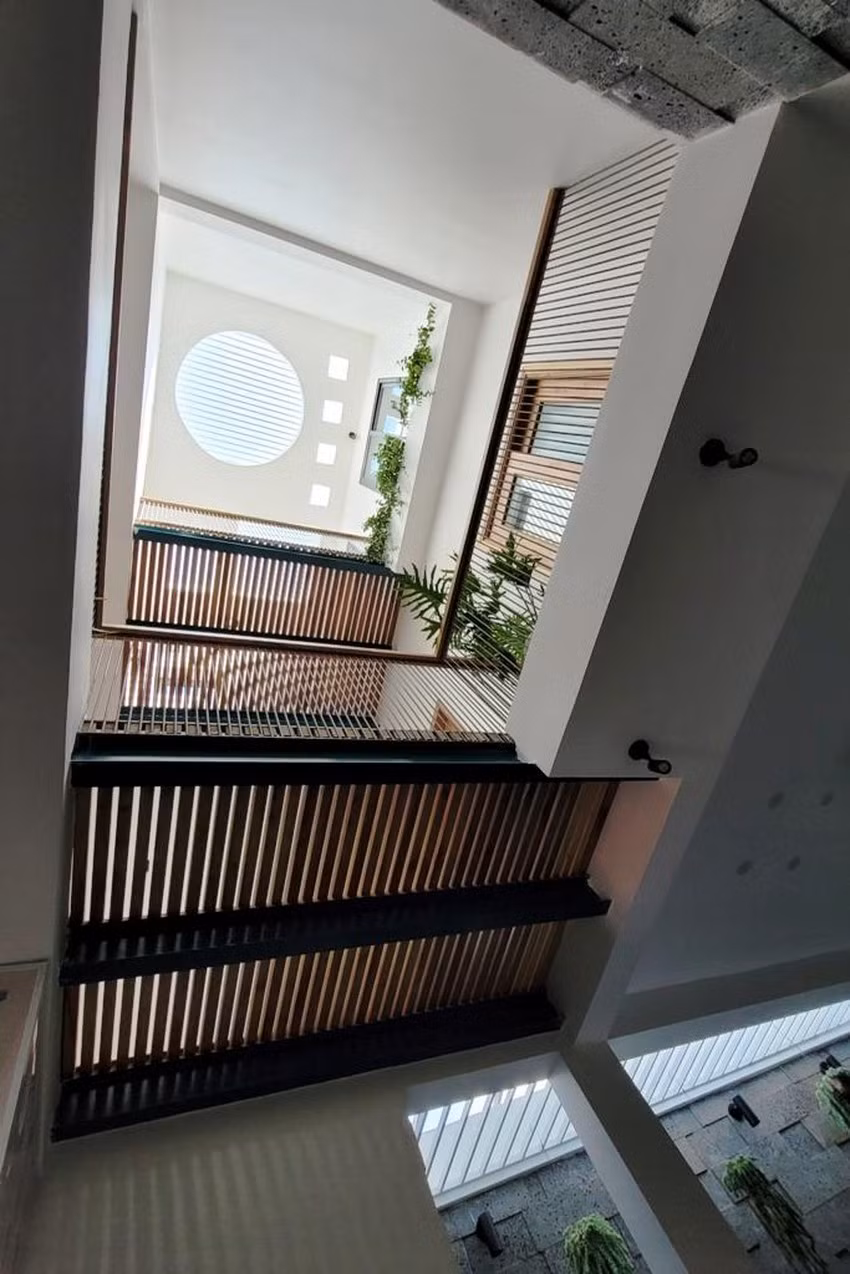 | Thiết kế thông tầng lấy sáng và kết nối các gian phòng lại với nhau. |