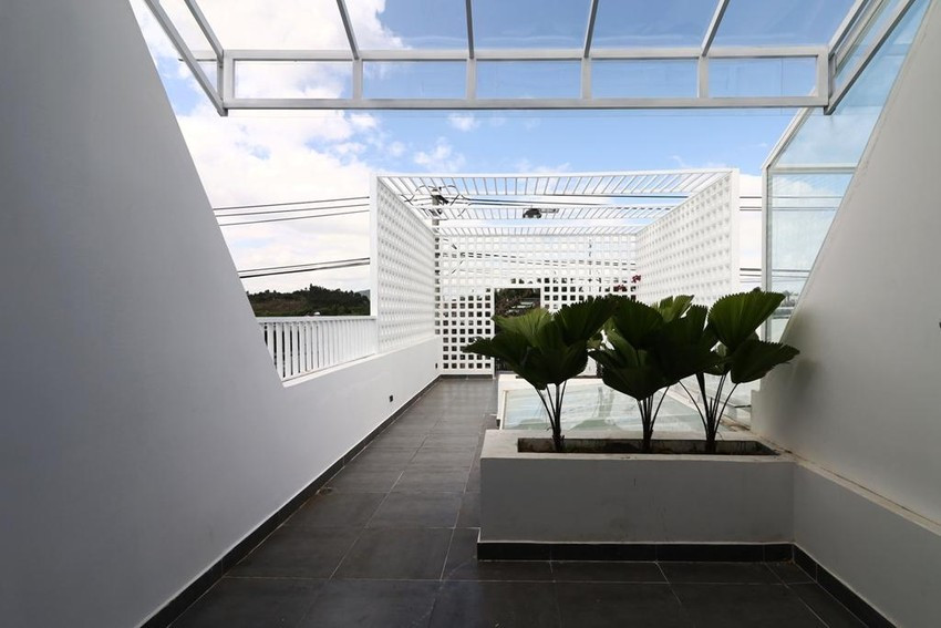 | Màu trắng của những ô gạch làm nổi bật cả không gian tầng thượng. |