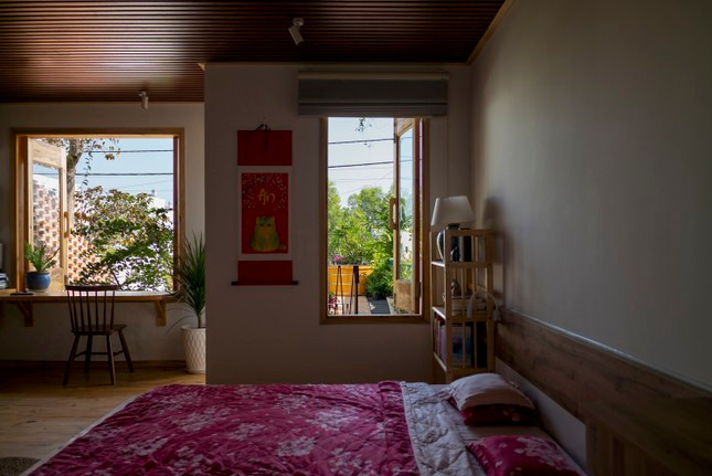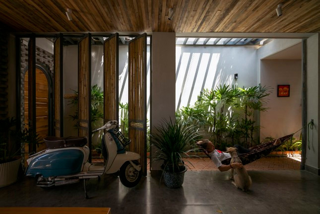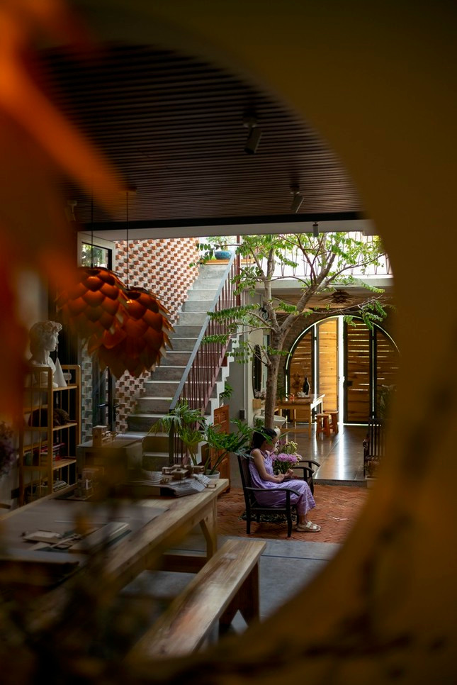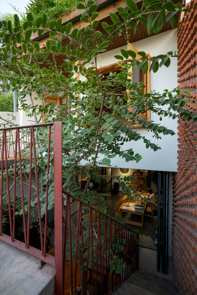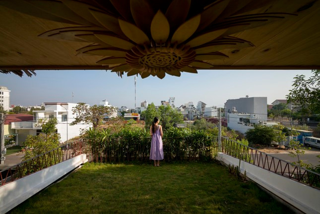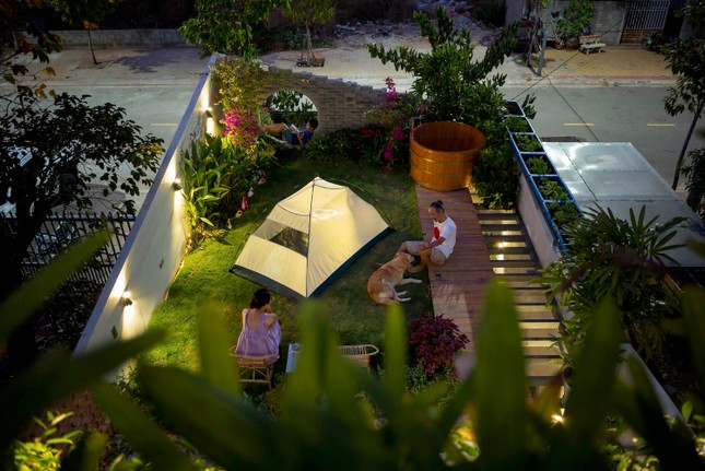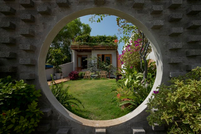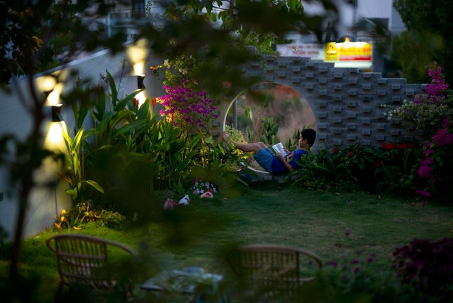 | Ấn tượng nhất chính là khu vườn mở về phía bầu trời nhờ được đặt ở tầng 2, không gian xanh mát với cửa tròn gợi nhớ về ngôi nhà của dế mèn trong tác phẩm của nhà văn Tô Hoài, nơi anh ngắm trăng, hóng gió, vuốt râu và luyện tập. |