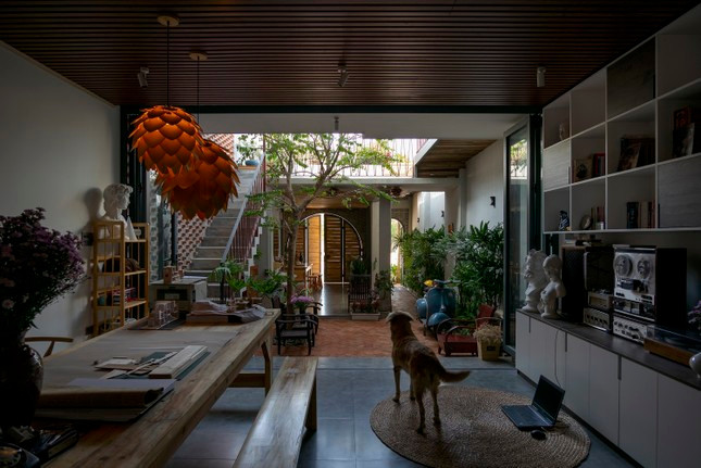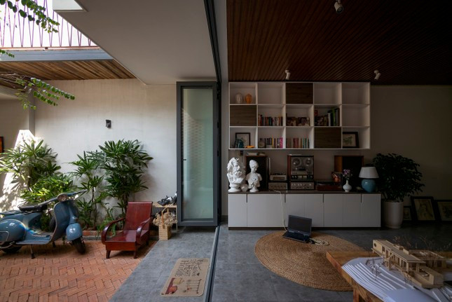 | Tầng một như một "hang dế" dưới lòng đất nhưng không tối tăm và bí bách nhờ những giếng trời và khe sáng được thiết kế khắp nhà. |