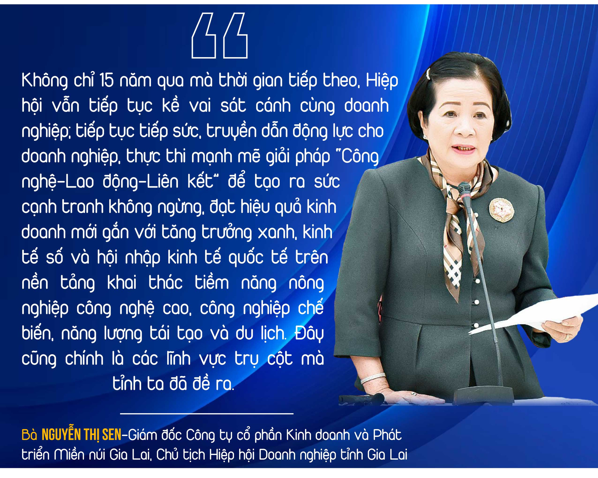 Ngày 13-10-2008, UBND tỉnh đã cho phép tổ chức Đại hội thành lập Hiệp hội Doanh nghiệp tỉnh nhằm hình thành một tổ chức xã hội-nghề nghiệp đại diện cho cộng đồng doanh nghiệp, doanh nhân trong tỉnh. Bà Nguyễn Thị Sen-Giám đốc Công ty cổ phần Kinh doanh và Phát triển Miền núi Gia Lai, Chủ tịch Hiệp hội Doanh nghiệp tỉnh-cho biết: “Ban đầu, Hiệp hội gặp rất nhiều khó khăn do tổ chức còn quá mới mẻ, xu hướng hợp tác, liên kết giữa các doanh nghiệp chưa được định hình. Song, Ban Chấp hành Hiệp hội đã cố gắng để khởi động, duy trì và từng bước tăng tốc, mở rộng toàn diện các mặt hoạt động, từ bảo vệ quyền lợi hợp pháp đến việc hỗ trợ, kết nối cho hàng trăm doanh nghiệp mỗi năm”.
