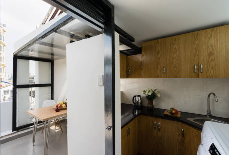 Rất nhiều nét độc đáo trong ngôi nhà này đặc biệt phòng bếp hiện đại này đặt trên tầng thượng là một ví dụ chứng minh.