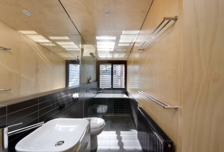 Nội thất phòng vệ sinh cũng được lựa chọn phù hợp với tông màu toàn bộ ngôi nhà.