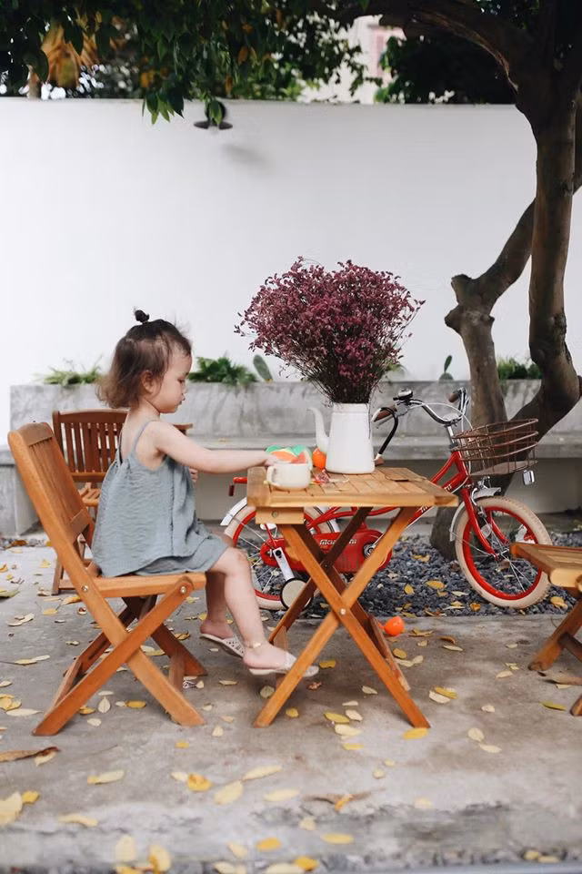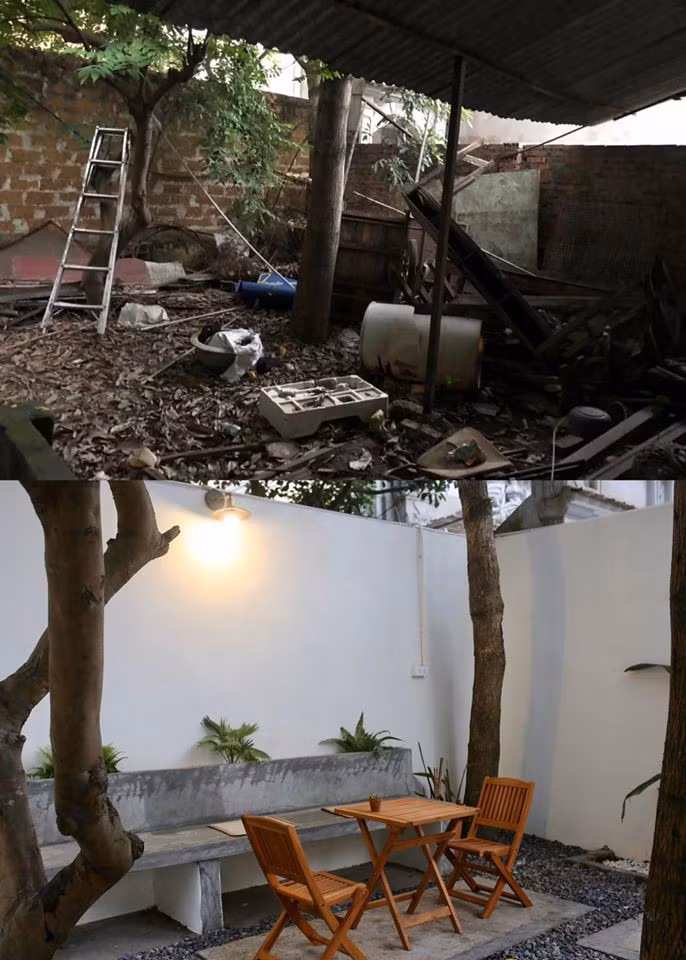 | Bể nước được đập bỏ thay bằng không gian sân thoáng đãng, xinh xắn. |