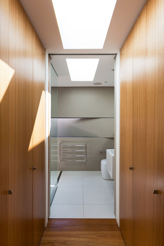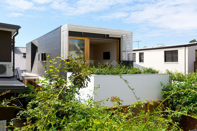 Lối đi nhỏ được xây dựng men theo chiều dài của ngôi nhà. Trên những bức tường bao, cây xanh rễ chùm được trồng phủ kín đem lại cái nhìn mở, kết nối chặt chẽ với thiên nhiên.