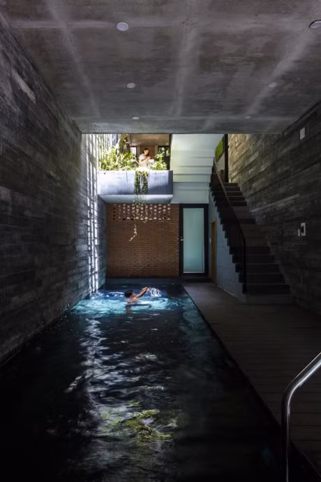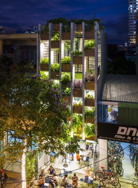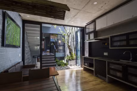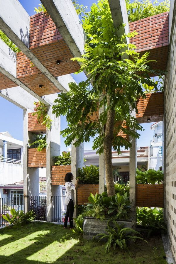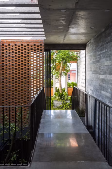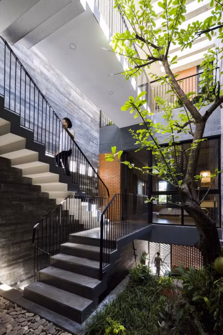 Không gian xanh được đặt ở phần trung tâm của ngôi nhà, cung cấp luồng không khí trong lành, “tràn” vào mọi ngóc ngách trong nhà thông qua hệ thống cầu thang mở.