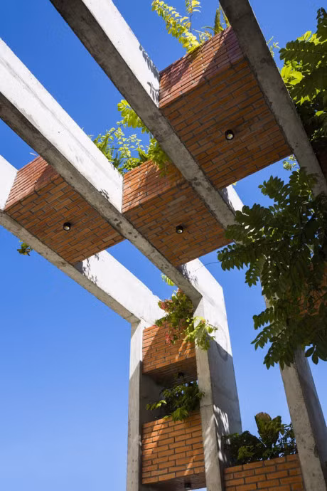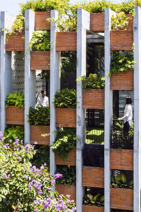 Ngôi nhà có kiến trúc độc đáo nhưng thống nhất ở cả ngoại và nội thất, từ hệ thống thông gió, vật liệu nhẹ, thân thiện với môi trường tới các khoảng trống phủ kín cây xanh, tất cả tạo nên một không gian sống xanh, vô cùng hiện đại.
