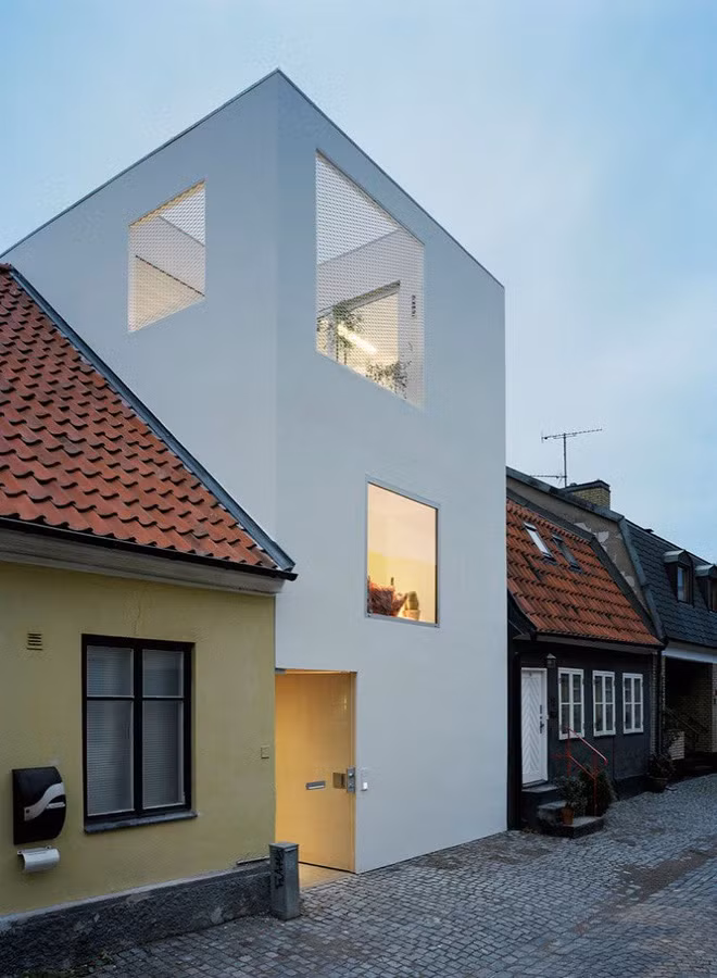 Nhìn từ bên ngoài trông ngôi nhà khá đơn giản, nhưng không hiểu sao, bạn càng nhìn lại càng thấy thu hút. Nét quyến rũ đến từ cách bài trí không gian mở, ánh đèn chiếu sáng, nội thất lấp ló sau bức tường đều khiến bạn phải yêu thích.
