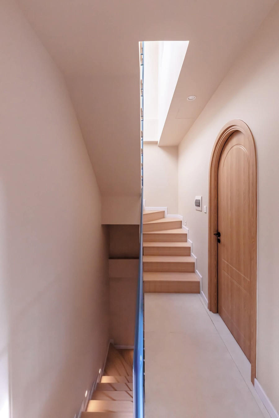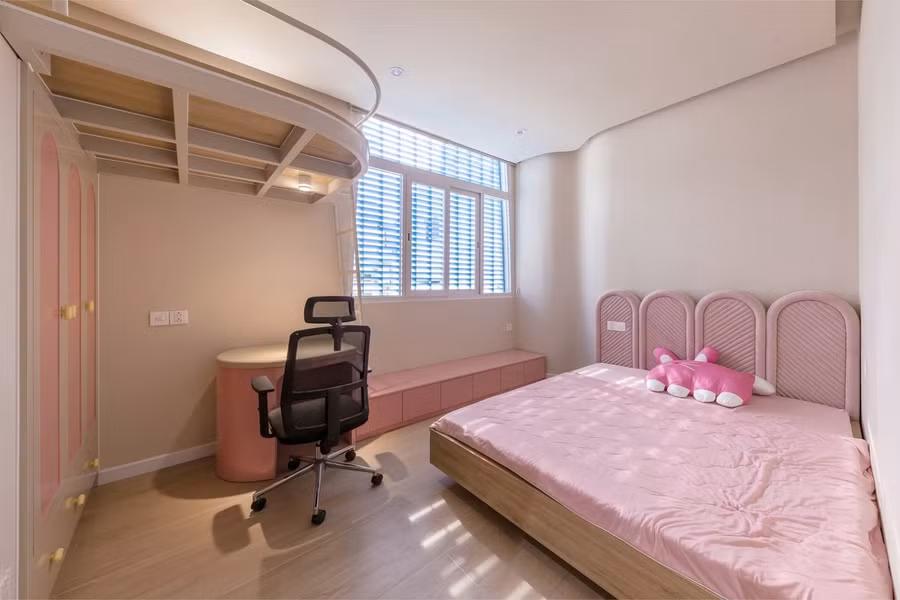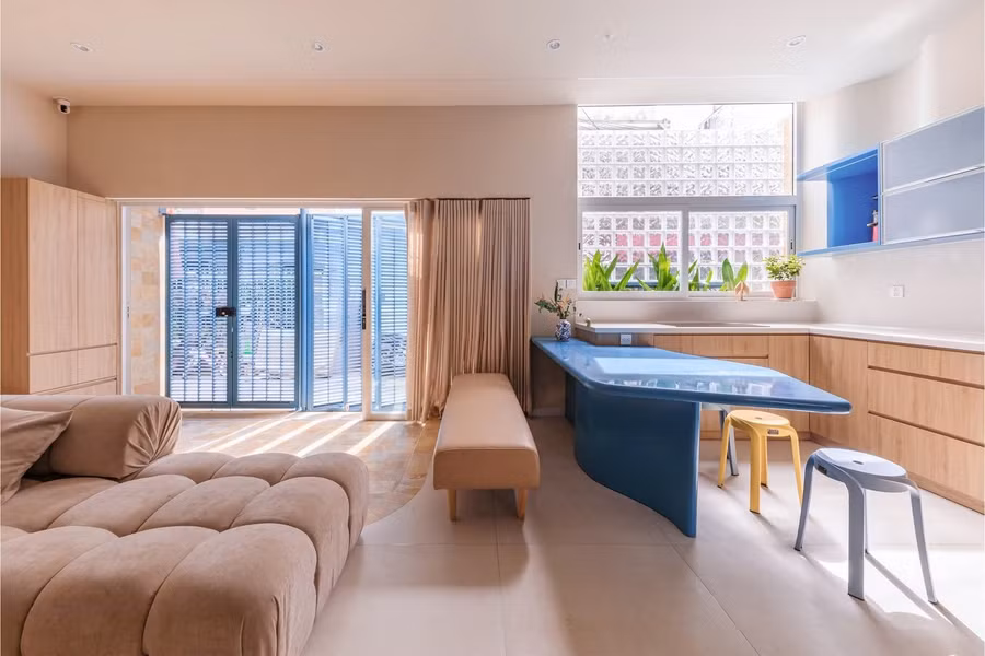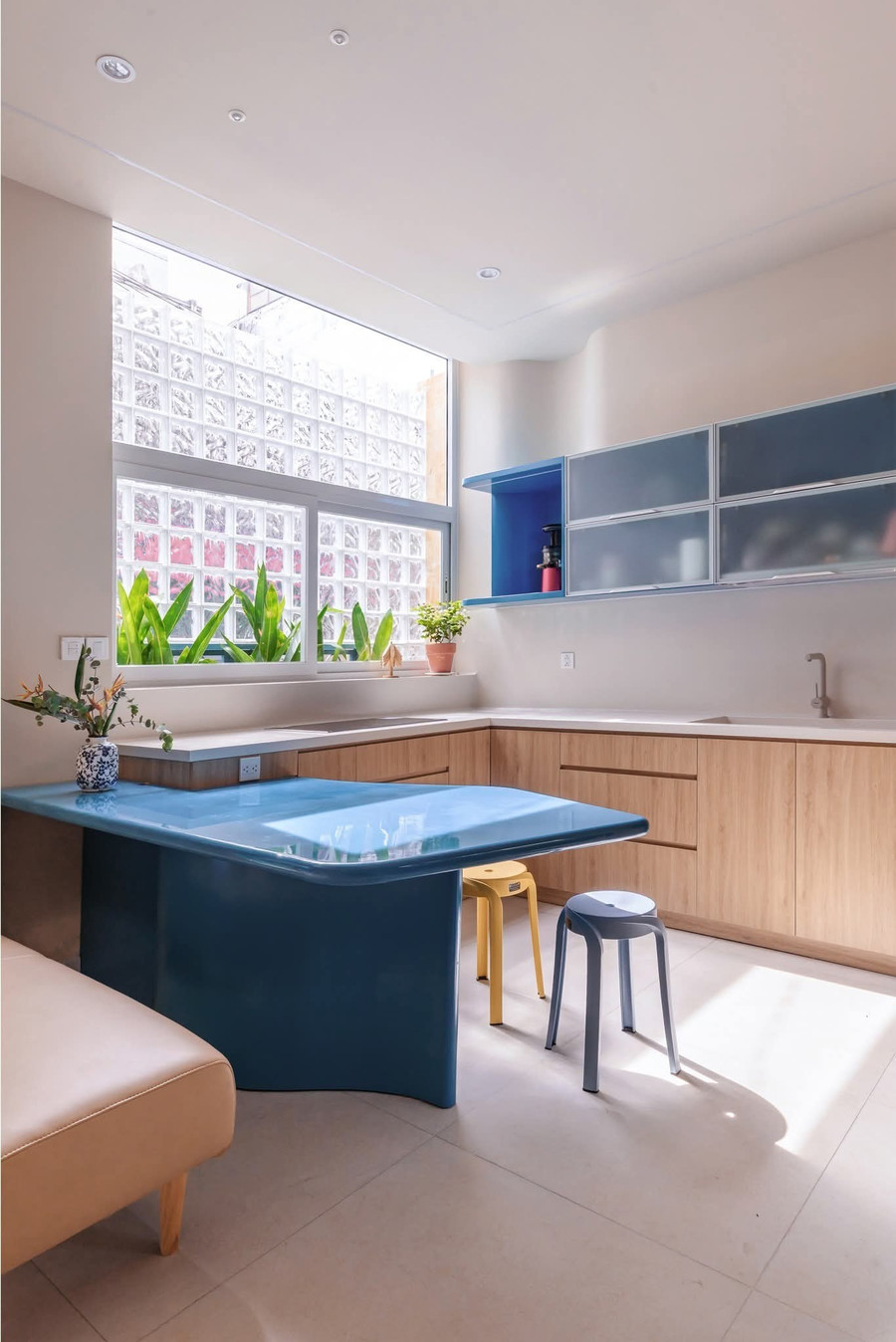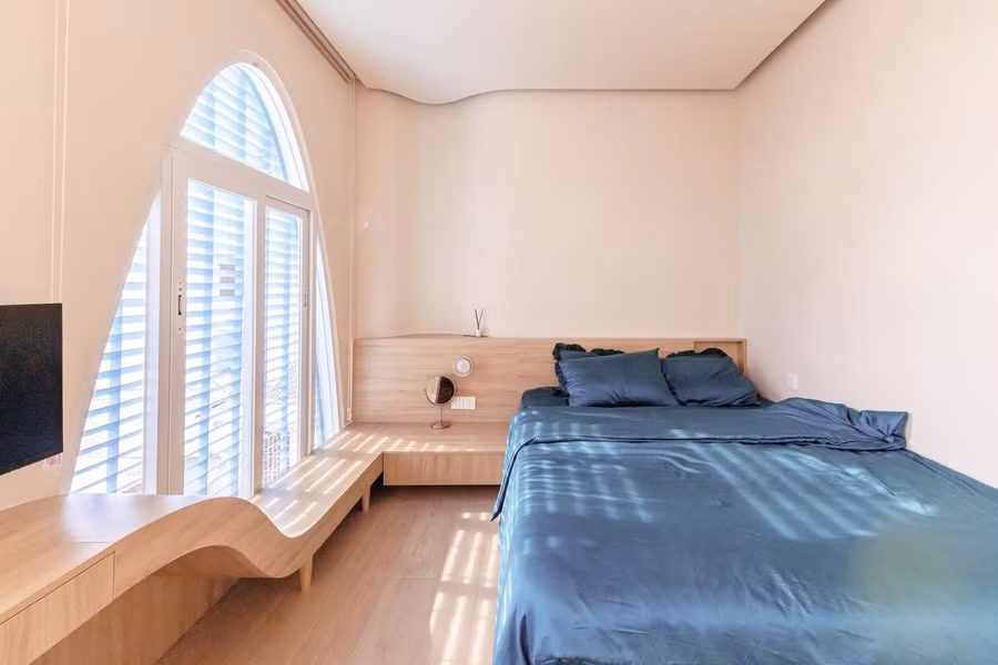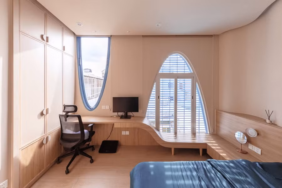 Bên trong, ý niệm giấy note tiếp tục được kéo dài qua các góc bo cong, bề mặt uốn lượn và hệ tủ bàn liền khối, tạo nên sự liên tục dịu dàng giữa các tầng. Từ một ý tưởng giản dị của đời sống thường ngày, Nhà Notes trở thành một tổng thể kiến trúc nhất quán, nơi mỗi hình khối và vật liệu đều mang trong mình lý do tồn tại rất riêng.