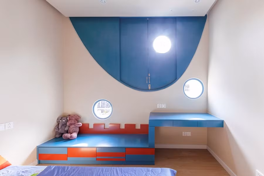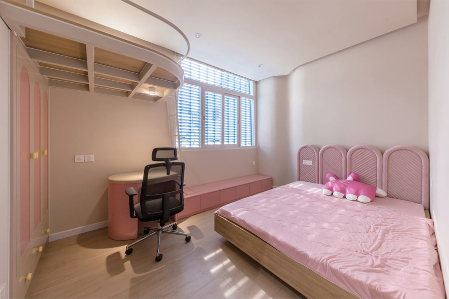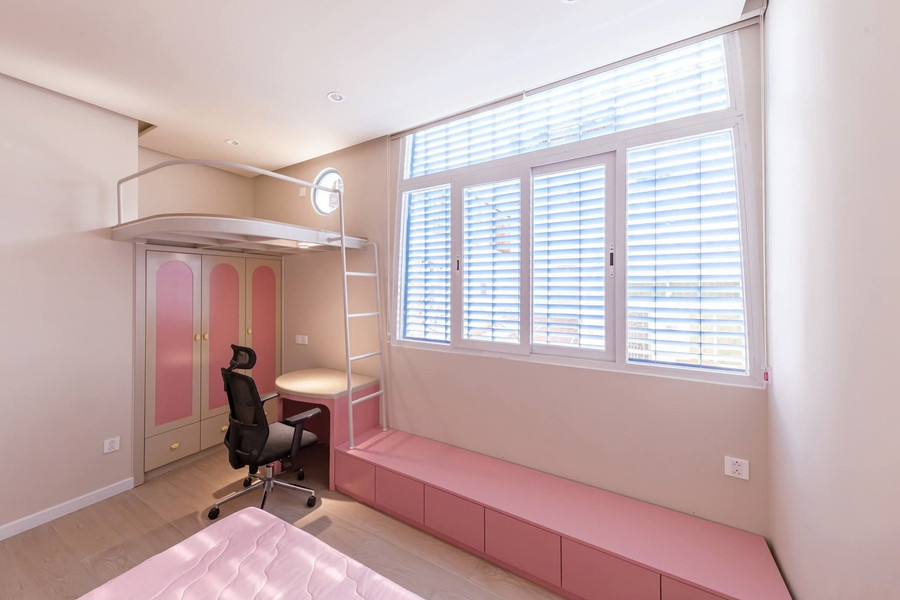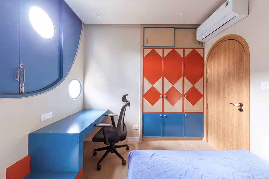 Các phòng ngủ liền mạch và ấn tượng với các mảng miếng màu sắc quen thuộc của những loại giấy note.