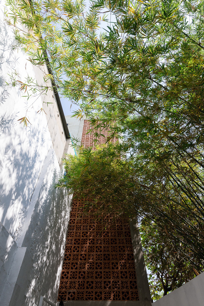 Mặt tiền ngôi nhà vô cùng thư giãn và ấn tượng với cây xanh và gạch thông gió.