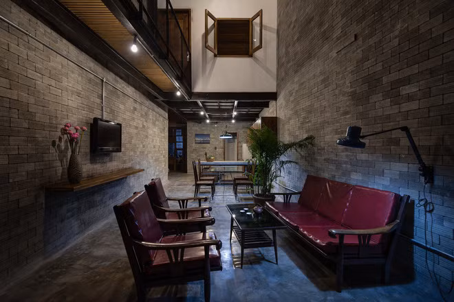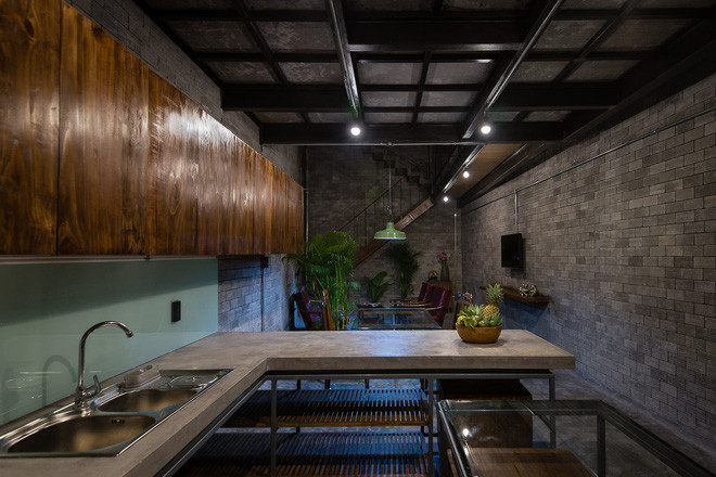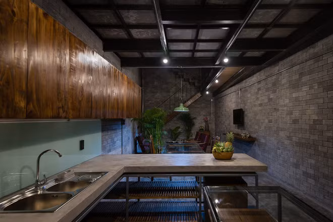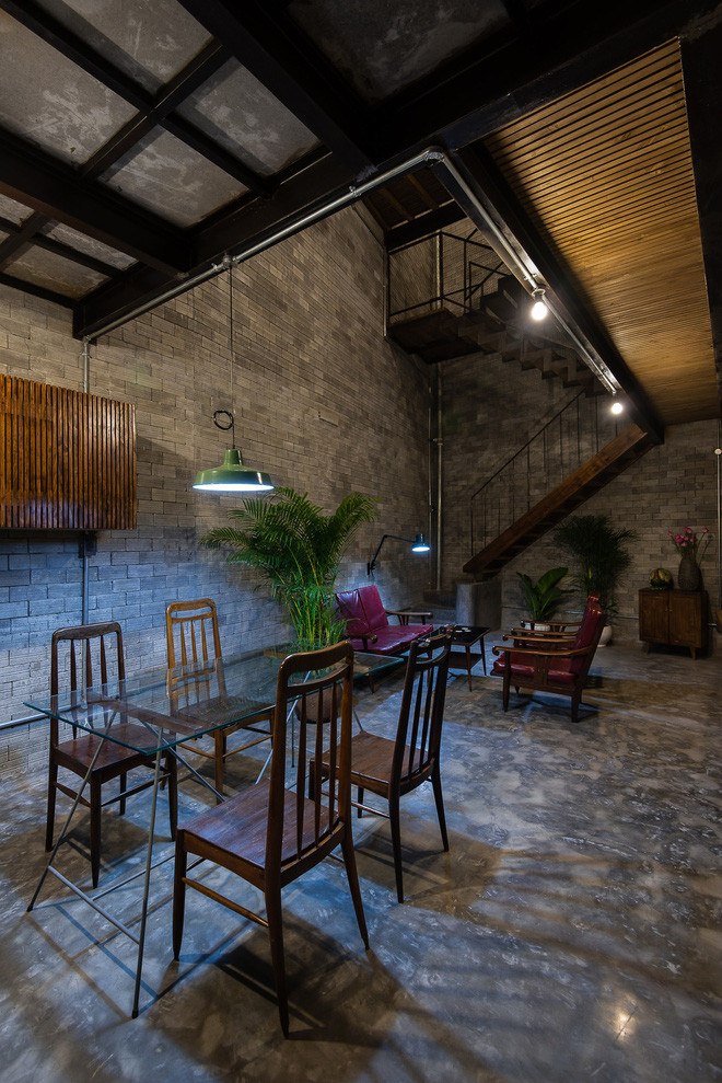 Khu vực ăn uống phảng phất phong cách công nghiệp.