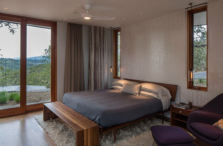Phòng ngủ có nhiều cửa lớn, vừa cung cấp ánh sáng, vừa tạo không gian thoáng đãng cũng như cung cấp tầm nhìn ra bên ngoài.