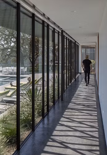 Lối đi hành lang cũng được bao bọc bởi hệ thống cửa kính hiện đại.
