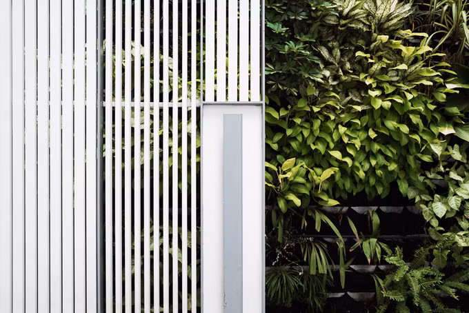 Những mảng cây xanh được bố trí duyên dáng để làm mềm không gian mang dáng vẻ hiện đại.