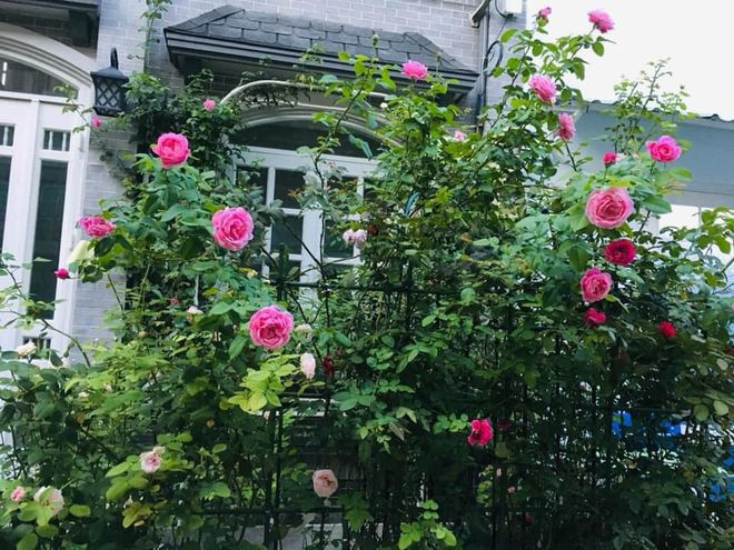 Phía ngoài ngôi nhà, vợ chồng Thanh còn trồng cả một hàng rào hoa hồng đẹp mê mẩn. Ánh nắng buổi sớm chiếu vào khu vườn, xuyên qua song cửa vào tận căn phòng làm không gian tràn ngập ánh sáng, lung linh huyền ảo như thể đang sắp đặt cho một bộ phim.