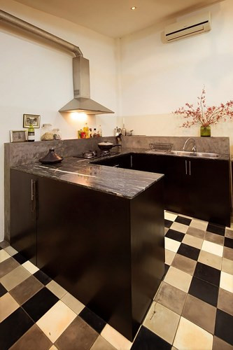 Song song với chất liệu truyền thống đó, gia chủ vẫn không quên nguồn nguyên liệu hiện đại đảm bảo sự thuận tiện trong sinh hoạt hàng ngày.
