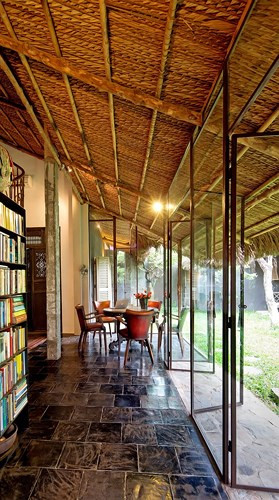 Không chỉ là người yêu thiên nhiên, chuộng vật liệu truyền thống, gia chủ còn là người yêu sách, vì vậy một giá sách lớn được đặt ở hành lang để chủ nhân có thể thả mình trong những trang kiến thức vô tận của nhân loại.