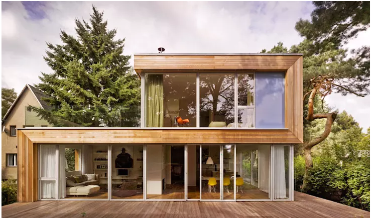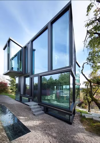 Hình ảnh một ngôi nhà có tường kính với thiết kế độc đáo.