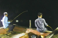 | Tàu câu mực của ngư dân xã Bình Chánh cập cửa biển Sa Cần sau hơn 3 tháng khai thác ở Trường Sa. |