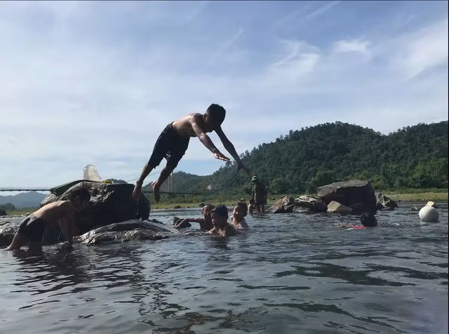 Chỗ bãi tắm đá cạn, nước chỉ ngang hông người lớn, dòng nước lững lờ trôi... nhưng đặt chân xuống sẽ phải hoảng hốt với dòng nước mạnh chảy xiết.