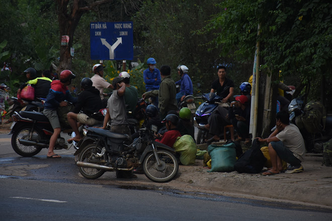 Những người ngoại tỉnh đến đây đi theo từng nhóm. Nhóm đông nhất chừng 10 người, tốp ít thì thường 2 đến 3 người. Trên chiếc xe máy họ mang theo lỉnh kỉnh đồ đạc, nào áo quần, nào chăn gối. Có những người mang theo cả nồi cơm điện để chuẩn bị cho chuyến lao động dài ngày.