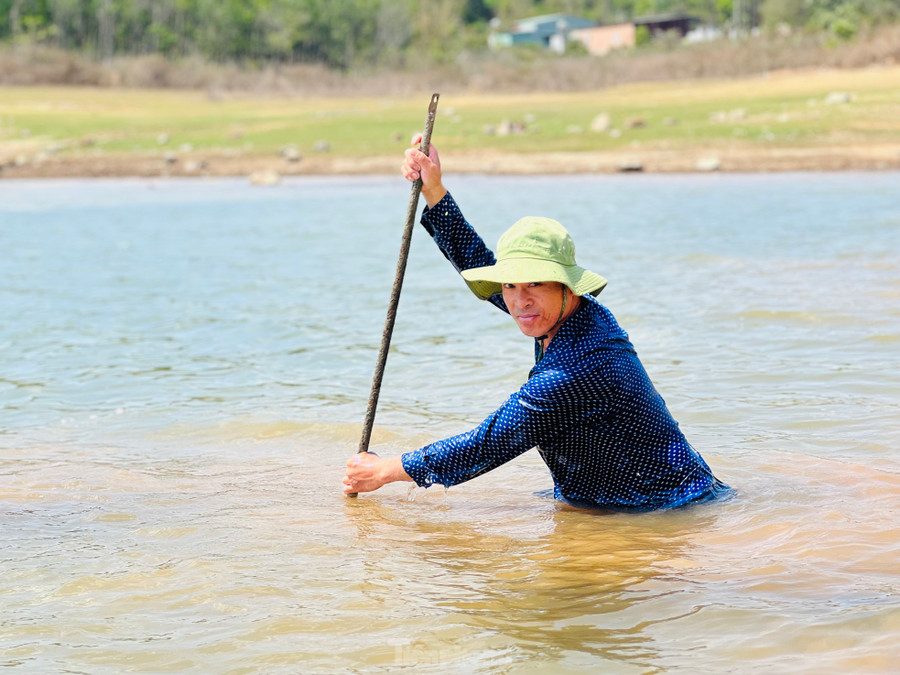 | Khoảng 11 giờ hơn, tranh thủ đi làm rẫy về, vợ chồng chị Y Ốc liền xuống một vùng nước sâu với hy vọng có thêm thu nhập để cải thiện cuộc sống. |