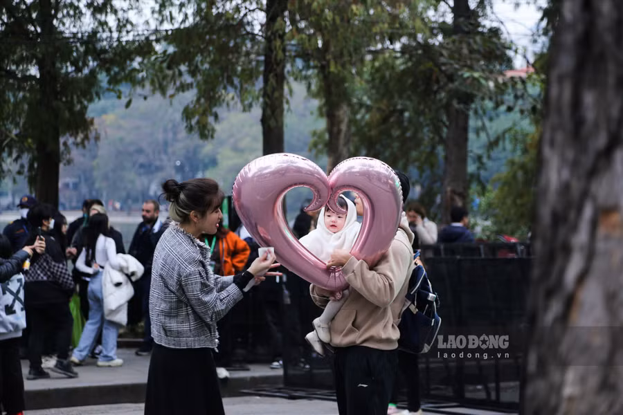 | Bạn Trần Ngọc Huyền (Quận Tây Hồ, Hà Nội) cũng nhóm bạn đứng check-in vào khu fanzone tại điểm đón Countdown khu vực Quảng trường Đông Kinh Nghĩa Thục. Huyền chia sẻ: “Mình tới sớm để lựa được một vị trí đẹp nhất gần sân khấu, để được cháy hết mình“. |