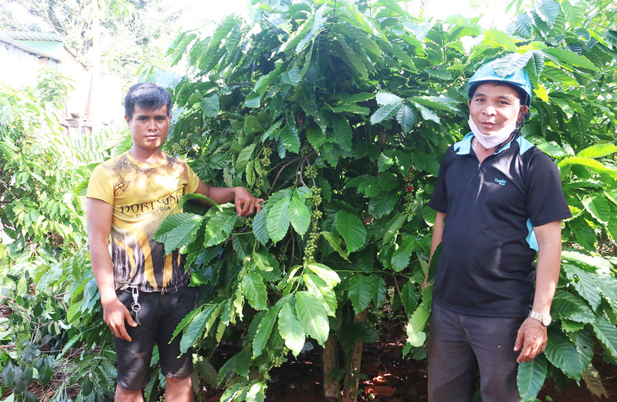 Còn gia đình anh Siu Blel (cùng làng) sau khi được tuyên truyền, vận động cũng đã mạnh dạn vay 60 triệu đồng vốn ưu đãi của Phòng Giao dịch Ngân hàng Chính sách Xã hội huyện để phát triển chăn nuôi. “Mình dự tính dùng toàn bộ vốn vay và số tiền tích góp từ việc đi làm thuê để mua bò, dê về nuôi. Mình đang làm chuồng, trồng cỏ và tìm nguồn giống bò, dê chất lượng để mua. Ngoài ra, nhờ áp dụng những kiến thức học được từ các lớp tập huấn về nông nghiệp, 6 sào cà phê của gia đình phát triển khá tốt, dự kiến năm nay thu được gần 2 tấn nhân. Với giá hiện tại gần 60 ngàn đồng/kg cà phê nhân, vợ chồng mình sẽ có thêm một khoản để chi tiêu, tái đầu tư”-anh Blel phấn khởi nói.